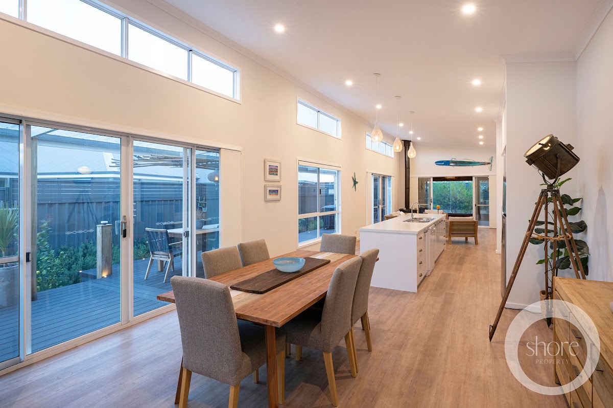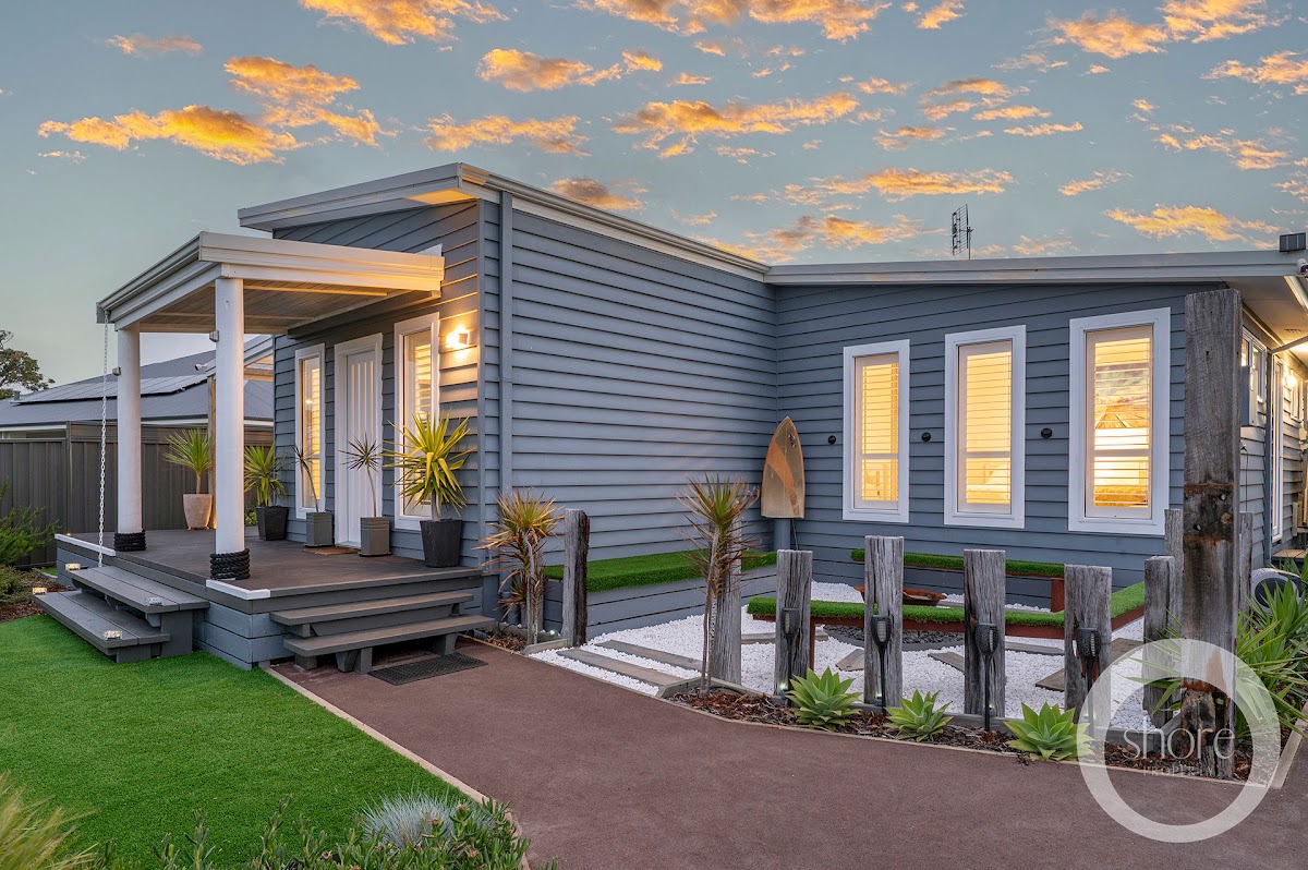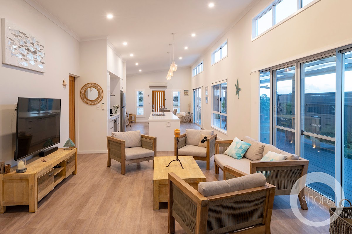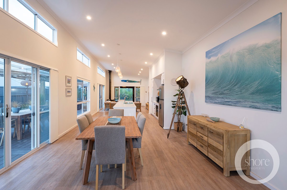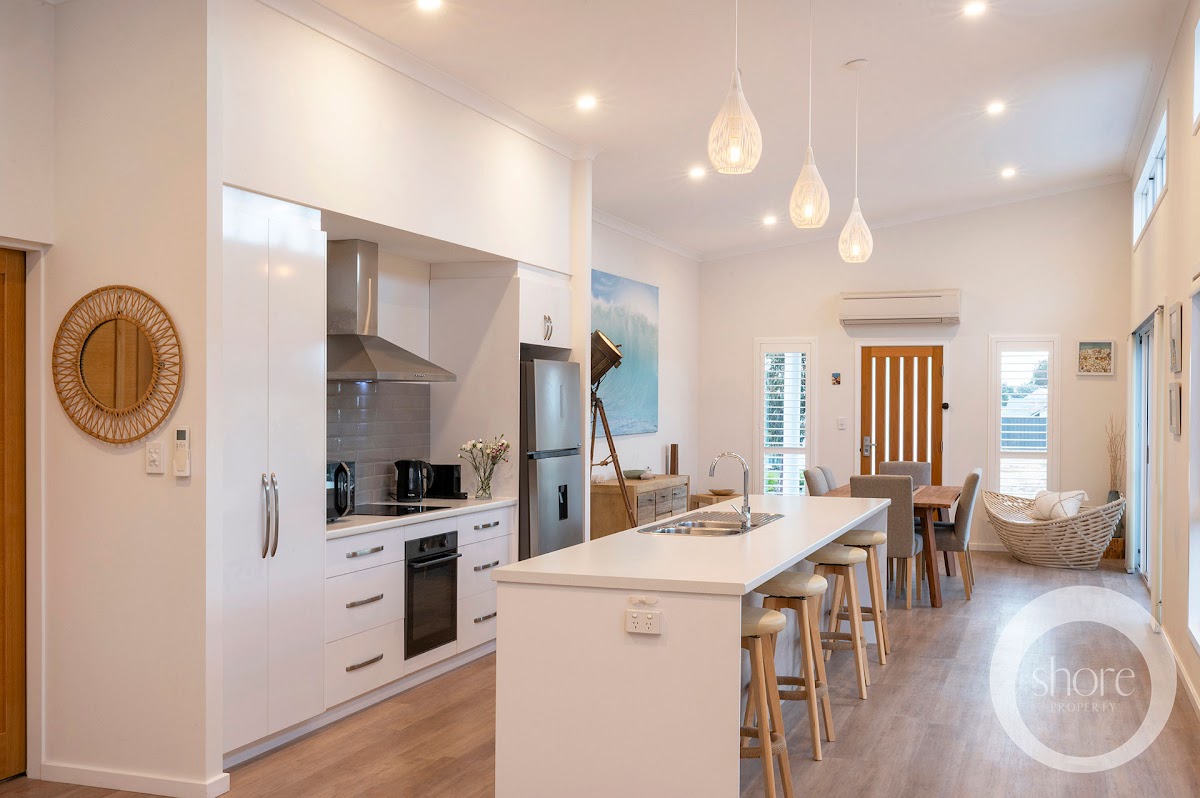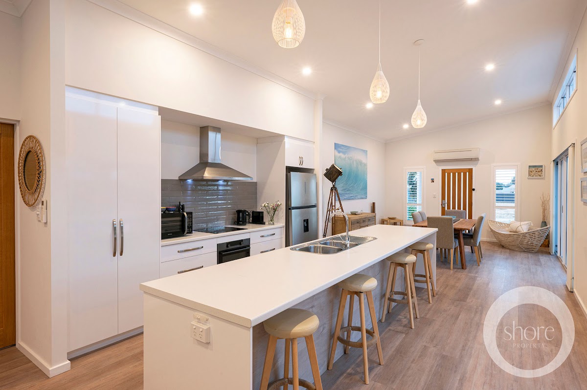 Exterior weatherboards in deep ocean blue are this near-new home’s nod to the myriad beachside holidays of your childhood. Luxuriate amongst every modern convenience in contemporary interiors of fresh seaside whites with warm timber boards underfoot.