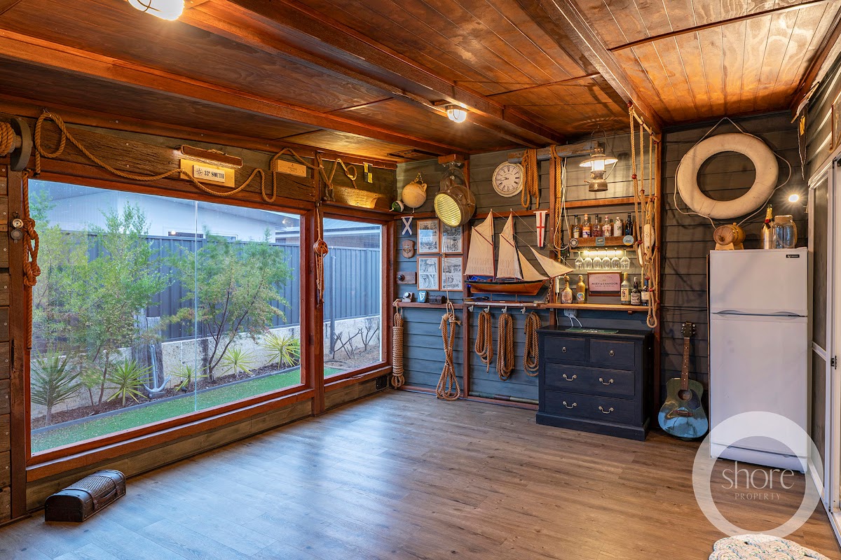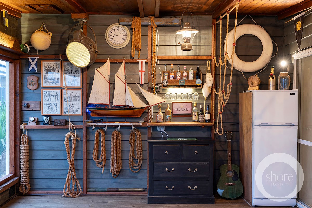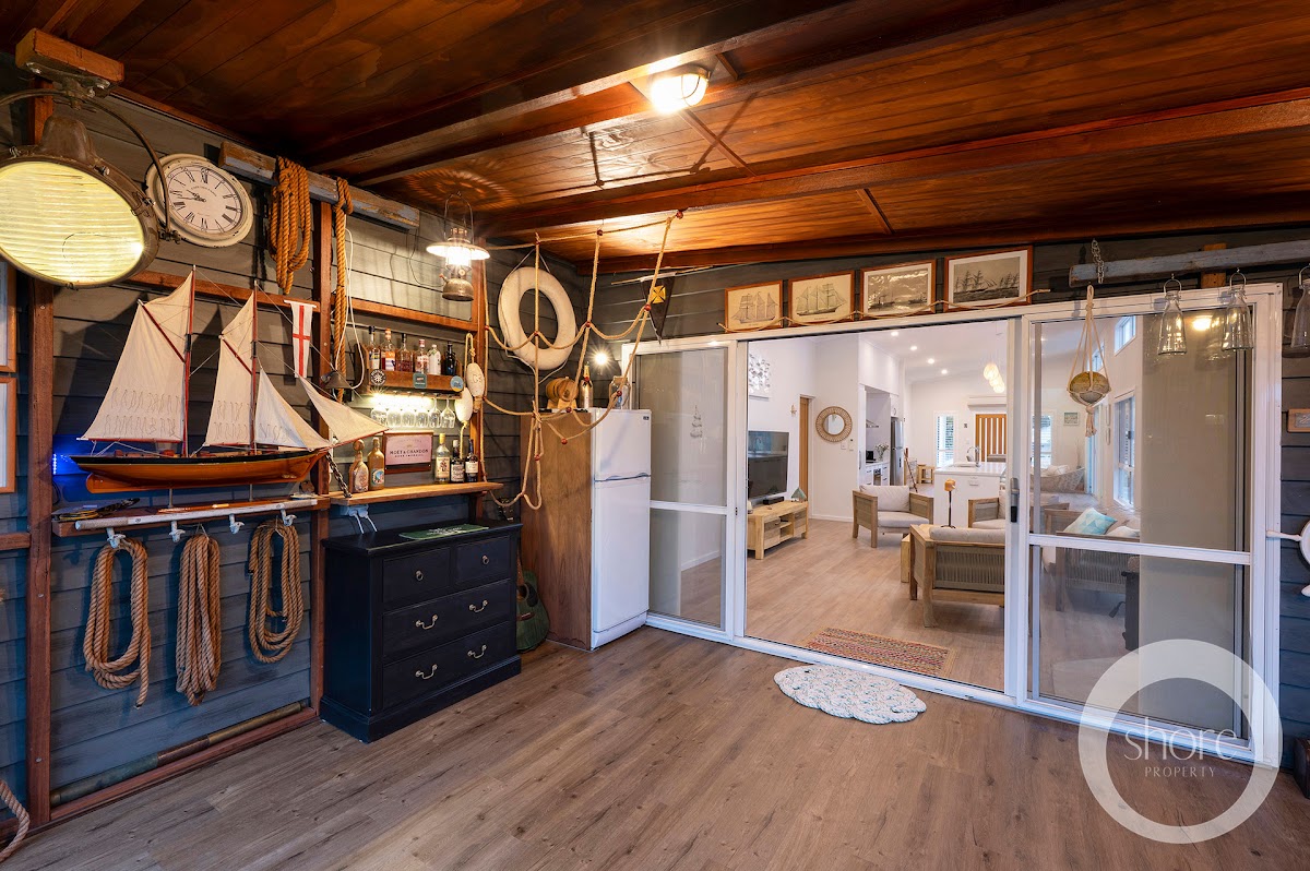 To the rear of the home “The Marine Room” or second living area, provides a contrast of rich nostalgic historical influence with natural tobacco coloured timbers and a fascinating display of nautical antiques and maritime objet d’art (most of which will be included in the sale) culminating in a home with a level of interest, intrigue and depth beyond it’s contemporaries.