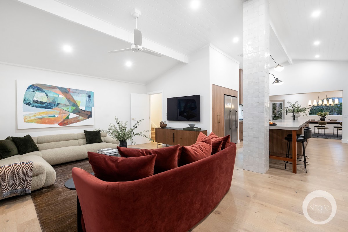 A family lounge flanks one side of the exquisite chefs kitchen with bi-folds that open to the eastern alfresco area.