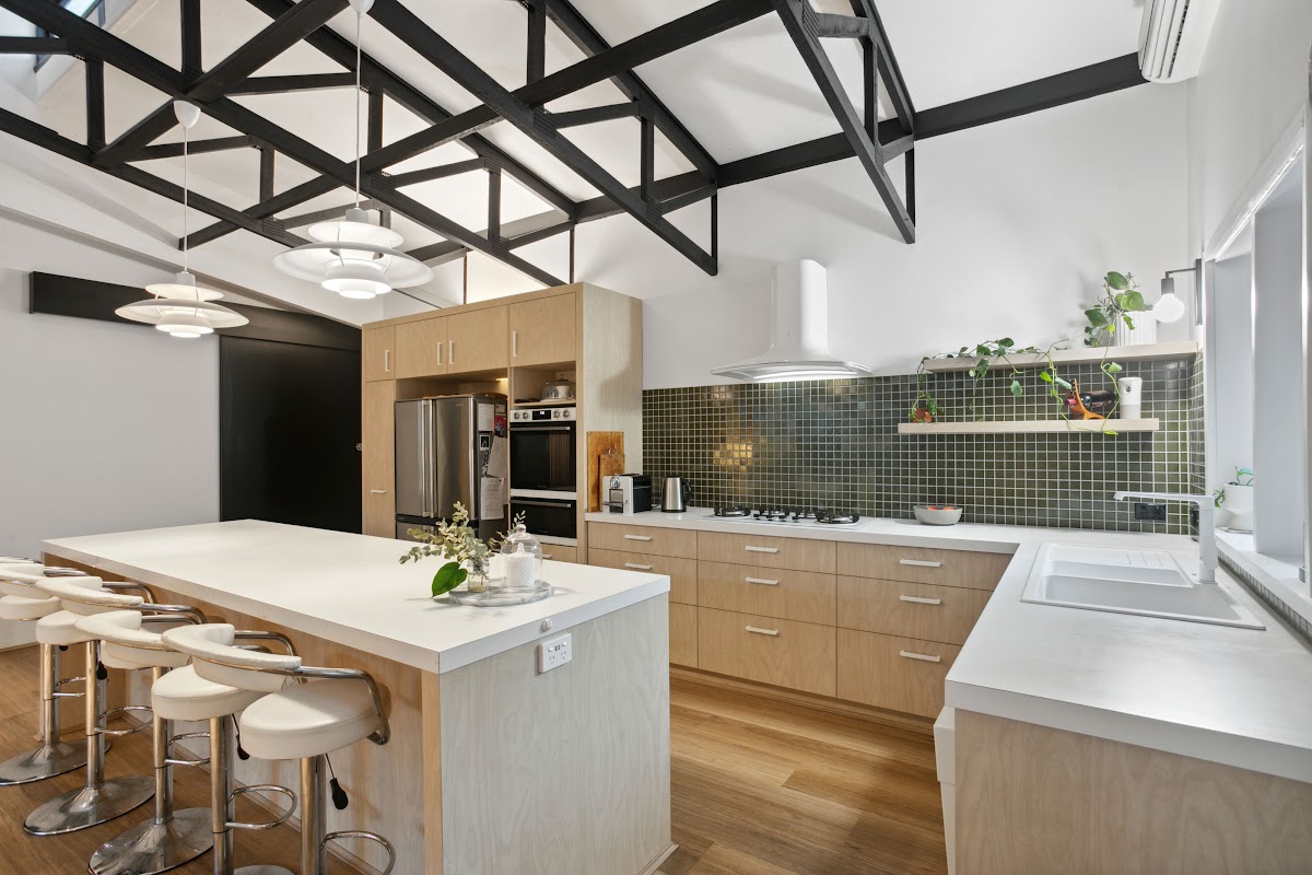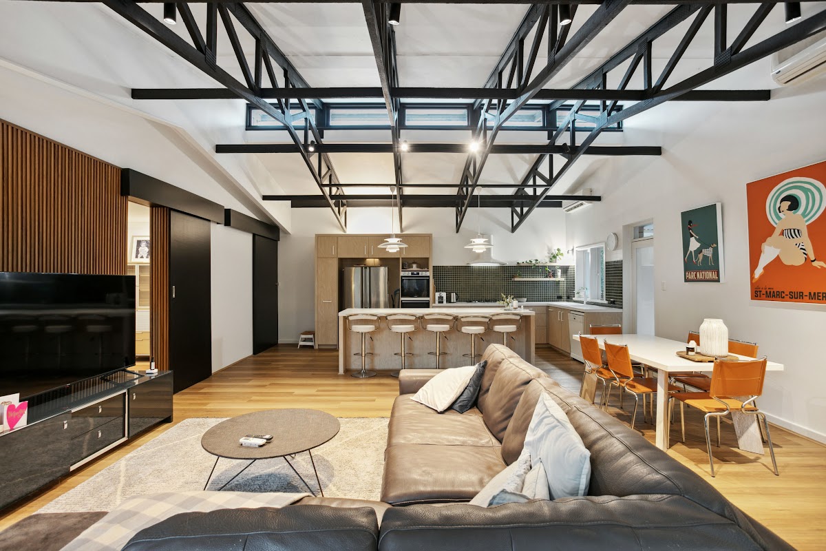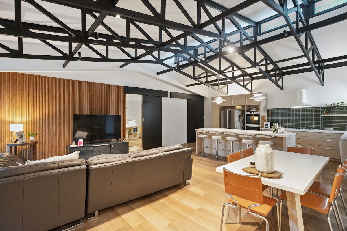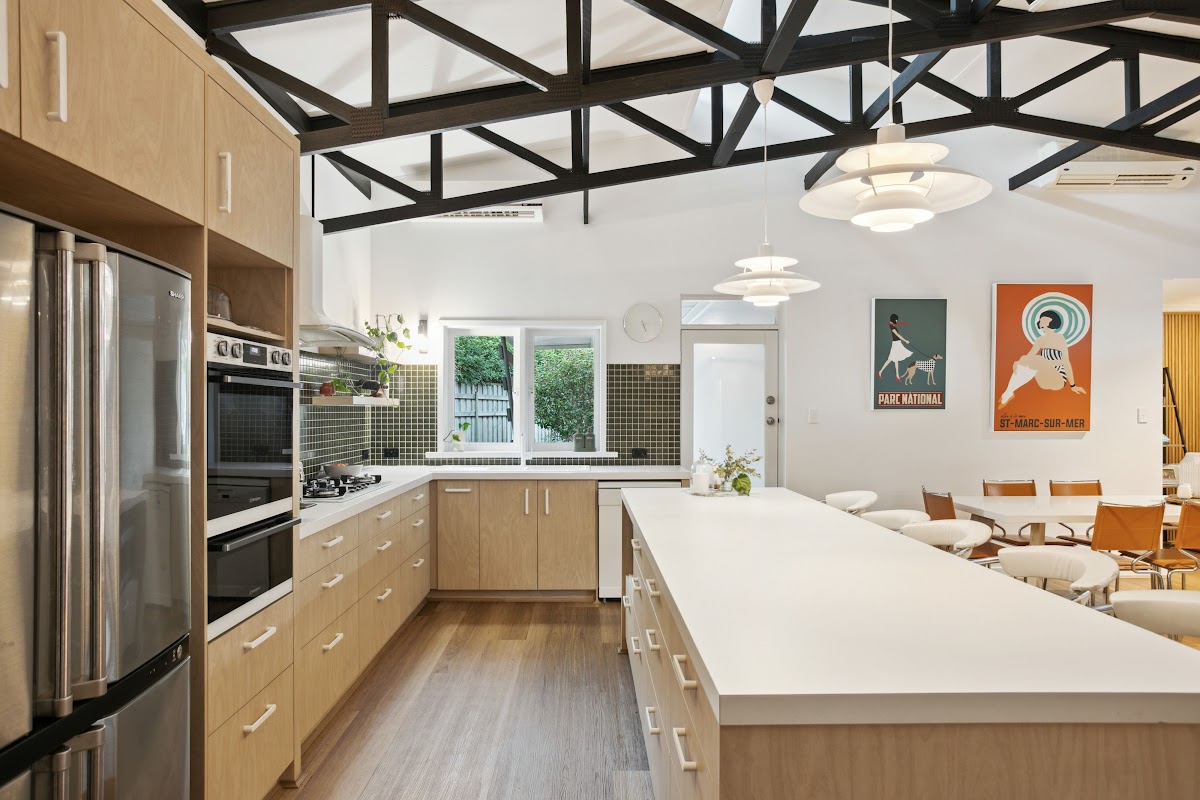 This huge mid-century home has undergone a chić contemporary renovation whilst retaining its just-too-cool period integrity. A builders own home, it is seriously over engineered and enjoys soaring ceilings and excellent floorplan separation.