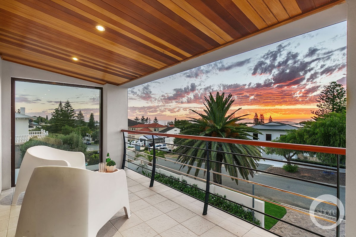 A huge master suite flows westward onto its own private balcony. An adjacent lounge and entertaining space does the same. Every vantage point on this level captures the vivid red sun sinking into the Indian Ocean to bookend each day. Also on this level is a home office and a separate utility room which the current owners – who are musos – utilise as their music room.