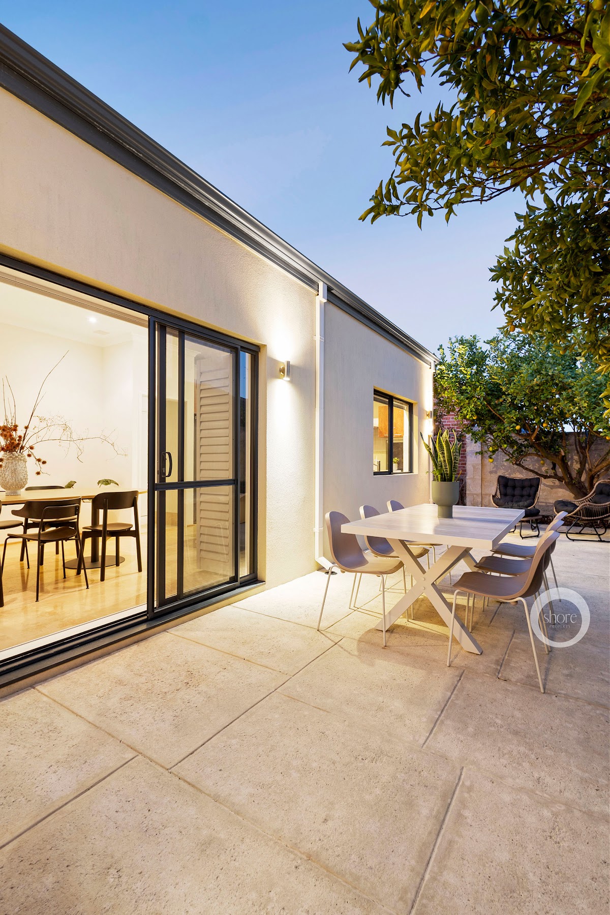 Character interiors with soaring ceilings and warm timber boards underfoot flow effortlessly to the sundrenched winter citrus courtyard to the north, and the cooling summertime outdoor dining courtyard to the south.