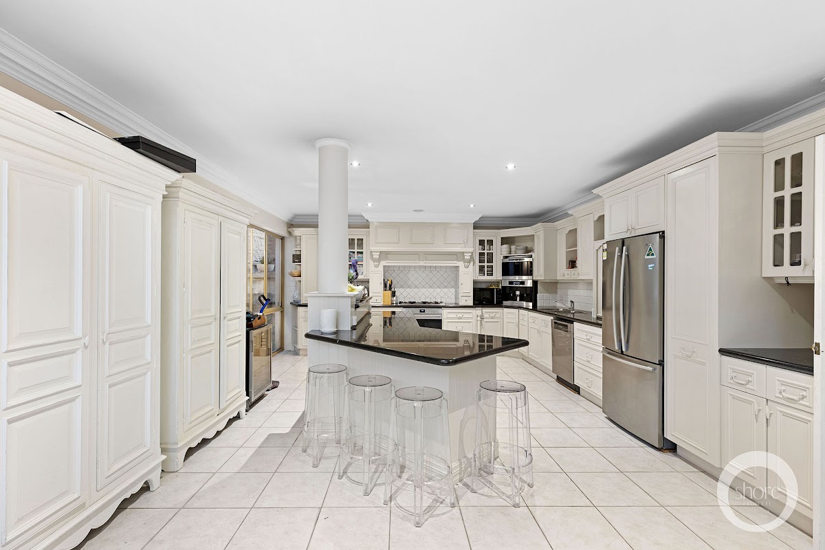 The huge French provincial kitchen is of proportions expected for a home that can cater for such large families with ample space for cooking, social interaction, conversation and together time. Its storage capacity is second to none and it is open plan with a family dining area and overlooks the pool which is fantastic for those of you with young kids.