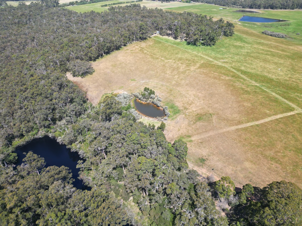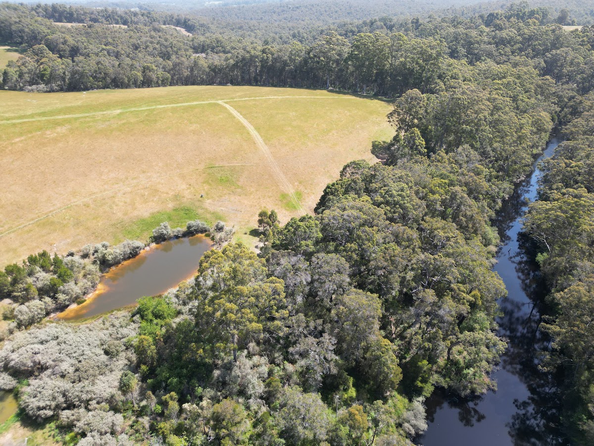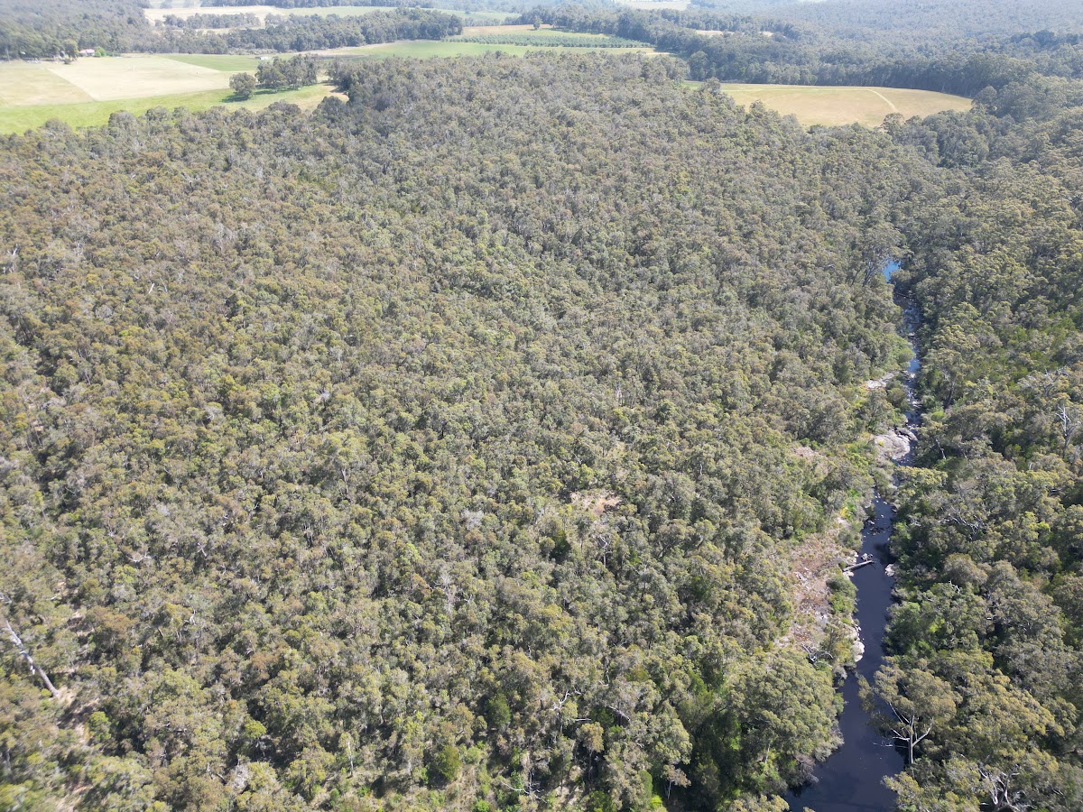 About a third pasture, which is fenced and currently running cattle. The other 2/3 is amazing mature forest including stands of huge Karri along the river line as well as blocks of Jarrah and Sheoak.